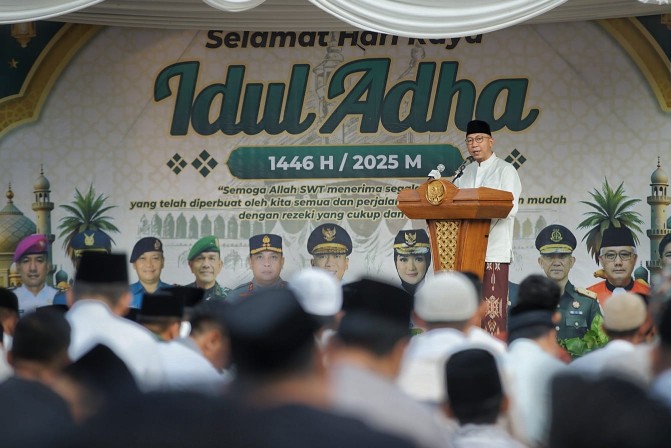 Dalam sambutannya, Gubernur Lampung Rahmat Mirzani Djausal menyampaikan rasa syukur atas limpahan rahmat dan karunia Allah SWT sehingga seluruh masyarakat Lampung dapat memperingati Hari Raya Idul Adha 1446 Hijriah dengan suasana penuh kedamaian, keberkahan, dan semangat persatuan.